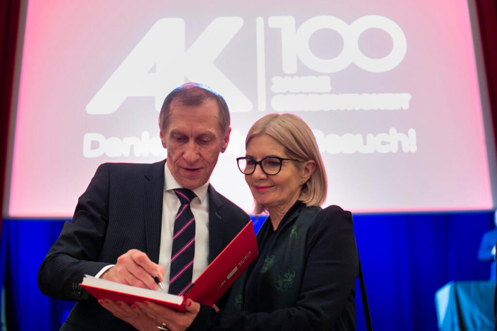 Beim Festakt zum runden Jubiläum kamen Vertreterinnen und Vertreter aus Stadt, Land und Bund sowie zahlreicher Institutionen zusammen; Landeshauptmann Hermann Schützenhöfer und Arbeitsministerin Christine Aschbacher sendeten Videobotschaften. Wichtige Meilensteine in der Geschichte der Arbeiterkammer hob die Historikerin Heidemarie Uhl hervor.