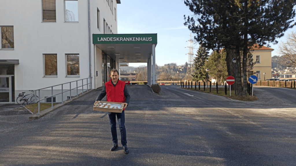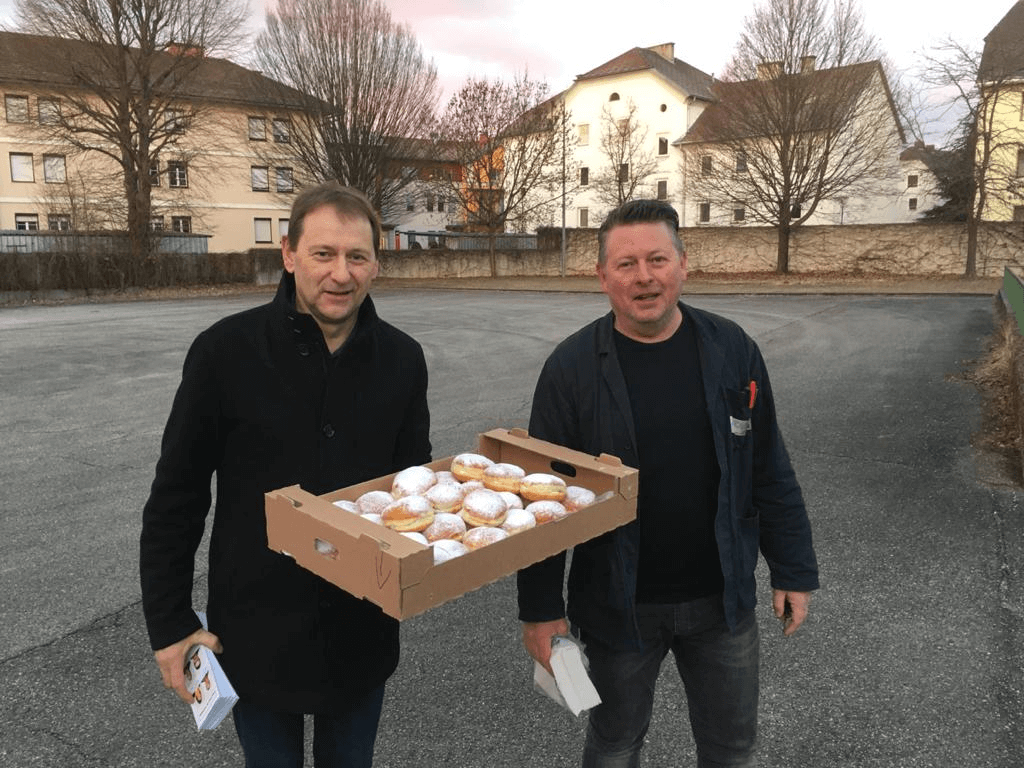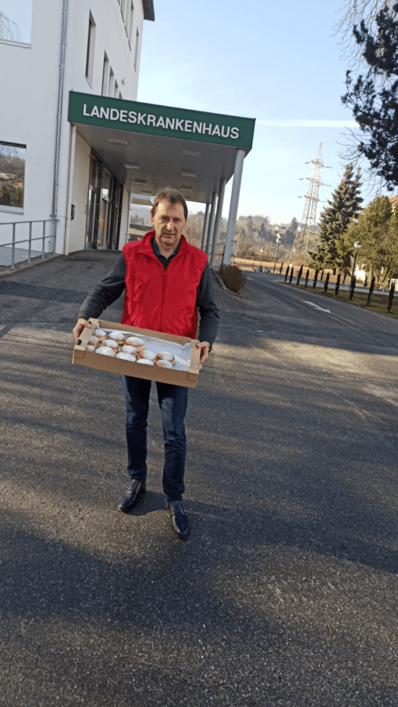 Rechtzeitig zum Faschingsausklang besuchte die FSG-Region Steirischer Zentralraum zahlreiche Betriebe – unter ihnen das LKH Voitsberg und die Firma Technoglas. Die Freude über die süße Überraschung war groß!