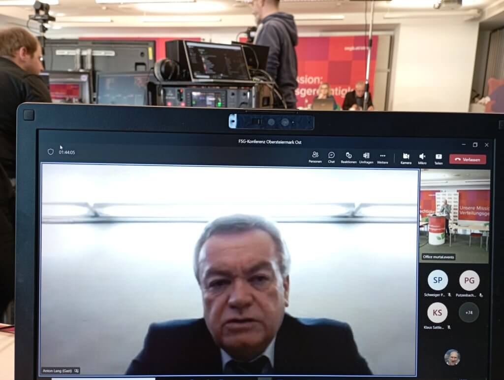 Auch Landesparteivorsitzender Anton Lang schaltete sich zur Regionalkonferenz dazu und ging ebenfalls auf den Krieg in der Ukraine und die Flüchtlingshilfe in der Steiermark ein. In Bezug auf die Innenpolitik kam er dann auf die aktuellen Maßnahmen der Bundesregierung gegen die Spritkostenexplosion zu sprechen und kritisierte dabei scharf, dass weder die Sozialpartner noch die Bundesländer in die Erarbeitung eingebunden waren. Schließlich dankte Anton Lang den GenossInnen der FSG für ihr Engagement.