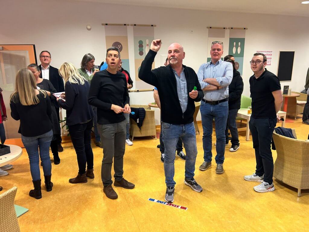 Der Wahlauftakt der FSG-Region Oststeiermark am 11. März war bereits die siebente erfolgreiche Funktionär:innenveranstaltung im Zuge unserer AK-Wahlkampftour durch die Steiermark. Als Ort des Geschehens fungierte das JUFA Stubenberg am See. Bei Darts, Kegeln und einem Schätzspiel gab es reichlich Gelegenheit, sich sportlich zu messen und gleichzeitig auszutauschen. FSG-Spitzenkandidat Josef Pesserl fand wie immer die passenden Worte und nutzte auch diesmal die Veranstaltung, um in Austausch mit allen Gästen zu treten.