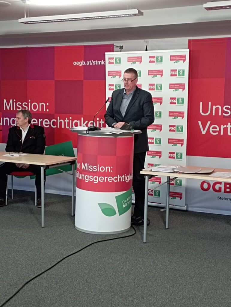 Bei der Konferenz der südweststeirischen FSG am 11. März wurde Thomas Halpfer einstimmig wieder zum Vorsitzenden gewählt. Seine StellvertreterInnen sind Sigrid Riegler, Sabine Resch, Robert Fauland, Bertram Fötsch und Gerhard Stelzl.
