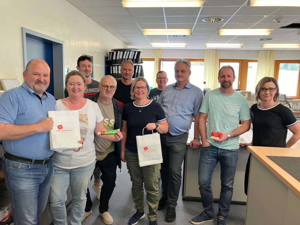 In den letzten 4,5 Wochen besuchte das FSG-Team der Südoststeiermark ganze 130 Betriebe! Mit im Gepäck hatte es kleine Geschenke, worüber sich die Beschäftigten sichtlich freuten!