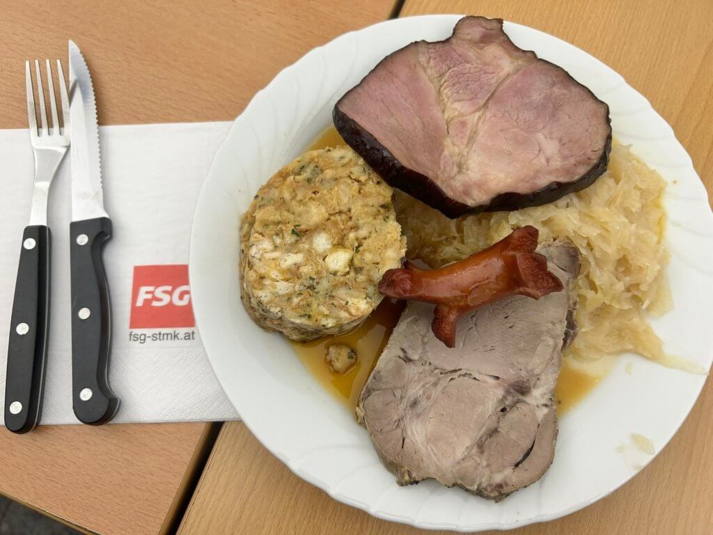 Die Veranstaltung mit AK-Präsident und Spitzenkandidat der Liste 1 – FSG Josef Pesserl wurde voin der Region Süd-Ost-Steiermark in Form eines zünftigen Knödelschießens organisiert. Ein hartes Match war angesagt: Schlussendlich gewann mit 4:3 die Moarschaft von Mary Hauer, die auch unseren AK- Präsidenten im Team hatte. Da durfte am Ende der Bauernschmaus beim gemütlichen Zusammensitzen natürlich nicht fehlen.