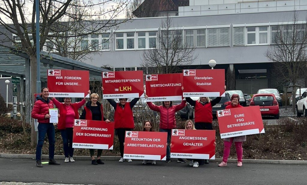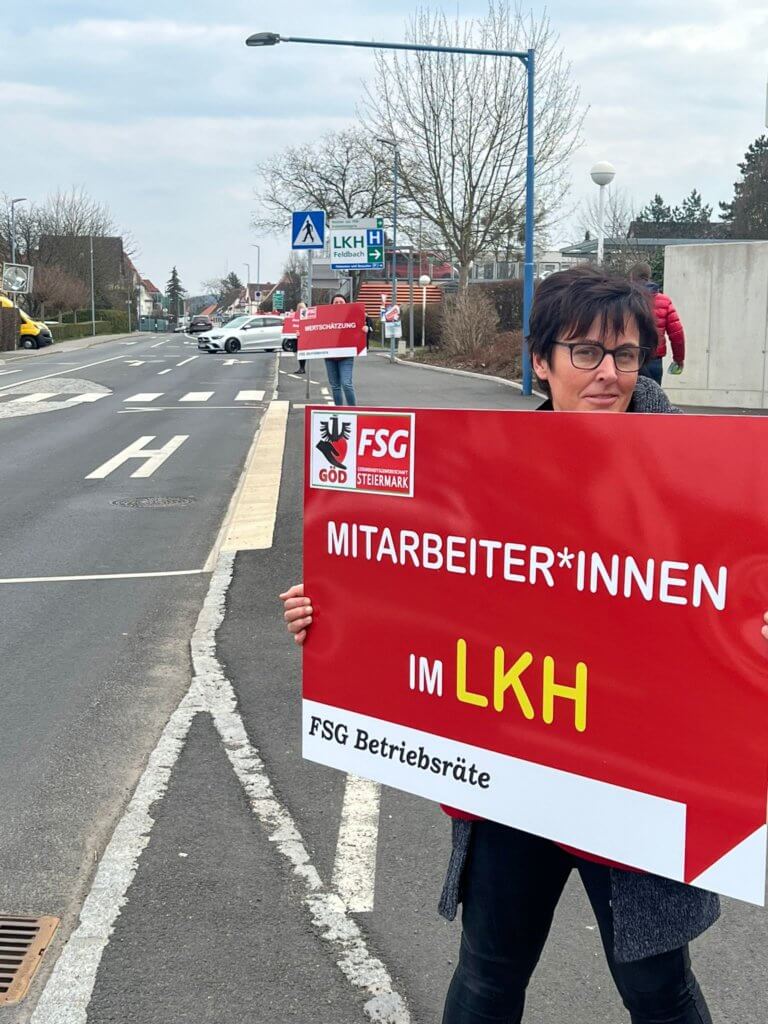 Mit der FSG-GÖD-Wanderplakatstraße startete eine Aktion, die in alle Regionen der Steiermark geschickt werden soll. Die FSG-Betriebsrät:innen in den steirischen Spitälern machen auf die nach wie vor prekäre Situation in nahezu allen Spitälern der steirischen Regionen aufmerksam. Die bedarfs- und zukunftsorientierte Gesundheitsversorgung muss in allen Regionen sichergestellt werden. Von Seiten der Landespolitik und Bundespolitik müssen spürbare Verbesserungsschritte gesetzt werden. Die politisch Verantwortlichen in der Steiermark, insbesondere die LRin für Gesundheit, sind aufgefordert, hier rasch zu handeln – besser morgen als übermorgen. Einige der FSG-GÖD-Ansätze (weitere folgen) wären: