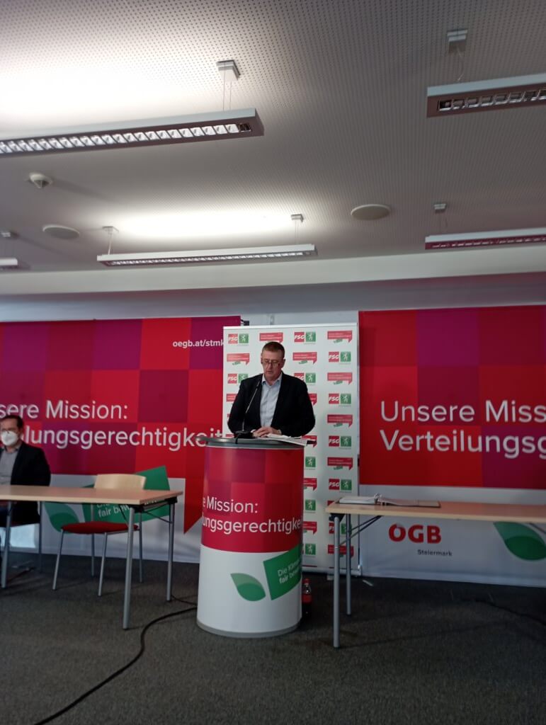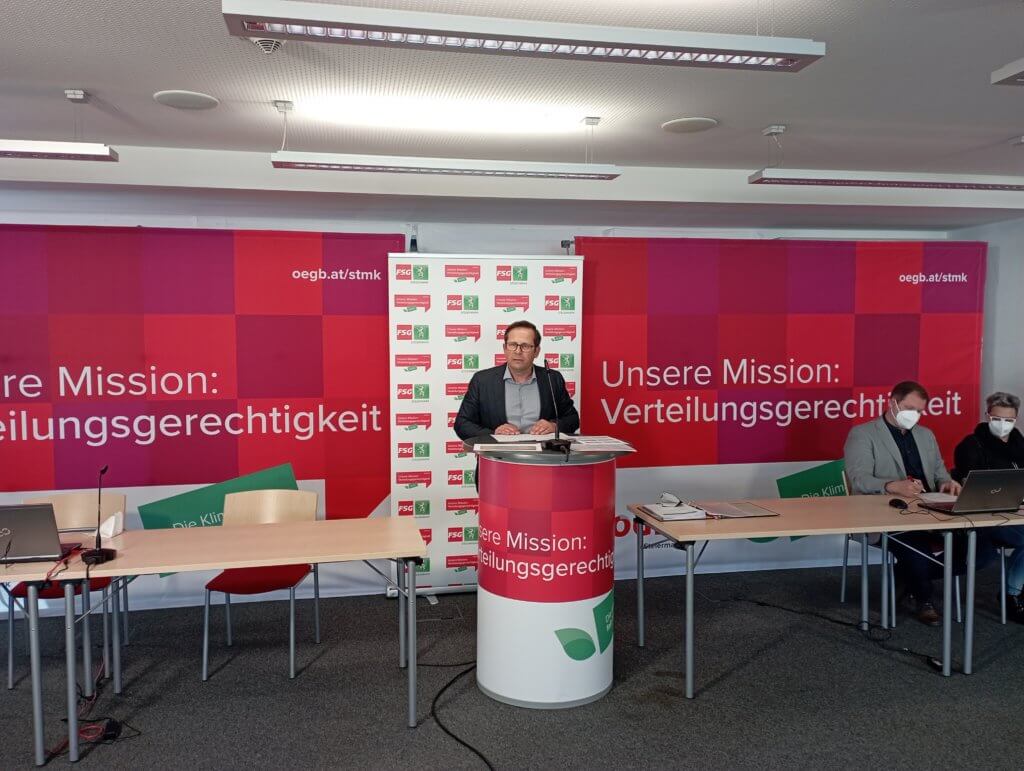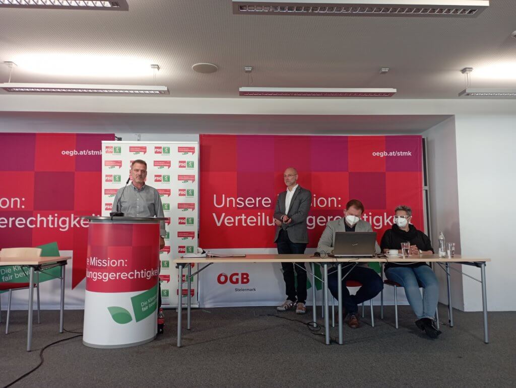 Die Regionalkonferenz fand am 7., April in Form einer Videokonferenz statt, die aus dem ÖGB-Haus in Graz in die politischen Bezirke Graz-Umgebung und Voitsberg übertragen wurde. Erste Begrüßungsworte kamen von Bundes-Fraktionssekretär Willi Mernyi, bevor der scheidende Regionalvorsitzende Josef Harb die Gelegenheit nutzte, sich für die gute Zusammenarbeit in der Region zu bedanken und als Ehrengast, der im Fritz-Matzner-Saal in Graz anwesend war, Arbeiterkammer-Präsident Josef Pesserl zu begrüßen. Im Namen der persönlich und online Anwesenden brachte Landes-Fraktionssekretär Wolfgang Waxenegger sodann die Solidarität mit den Menschen in der Ukraine zum Ausdruck.